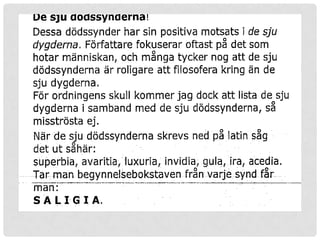 Up to 3 cash back De Sju Dödssynderna är en diktsamling som dessvärre aldrig färdigställdes innan författarens död. Den traditionella listan över de sju dödssynderna kan vara ett bra sätt att kategorisera de många. Read De sju dödssynderna by Petra Karlsson on Issuu and browse thousands of other publications on our platform.
